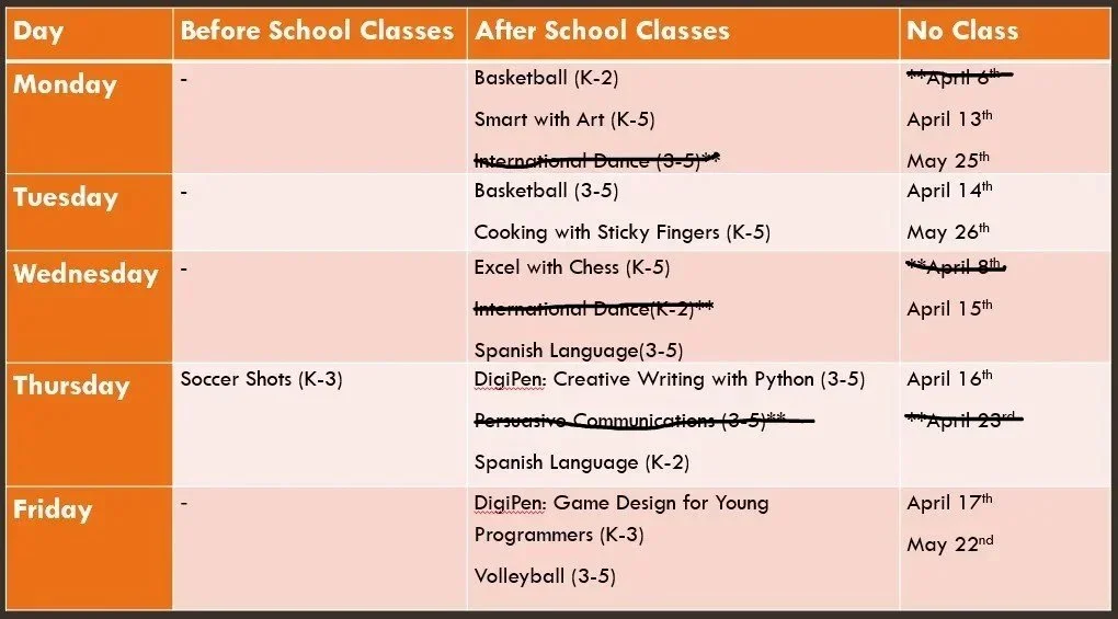 Enrichment Classes: Spring Season Mar 30th - June 5th